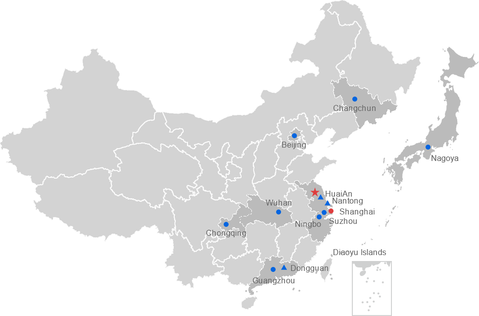 Production Plants : Dongguan,,,,,,Huaian, Nantong